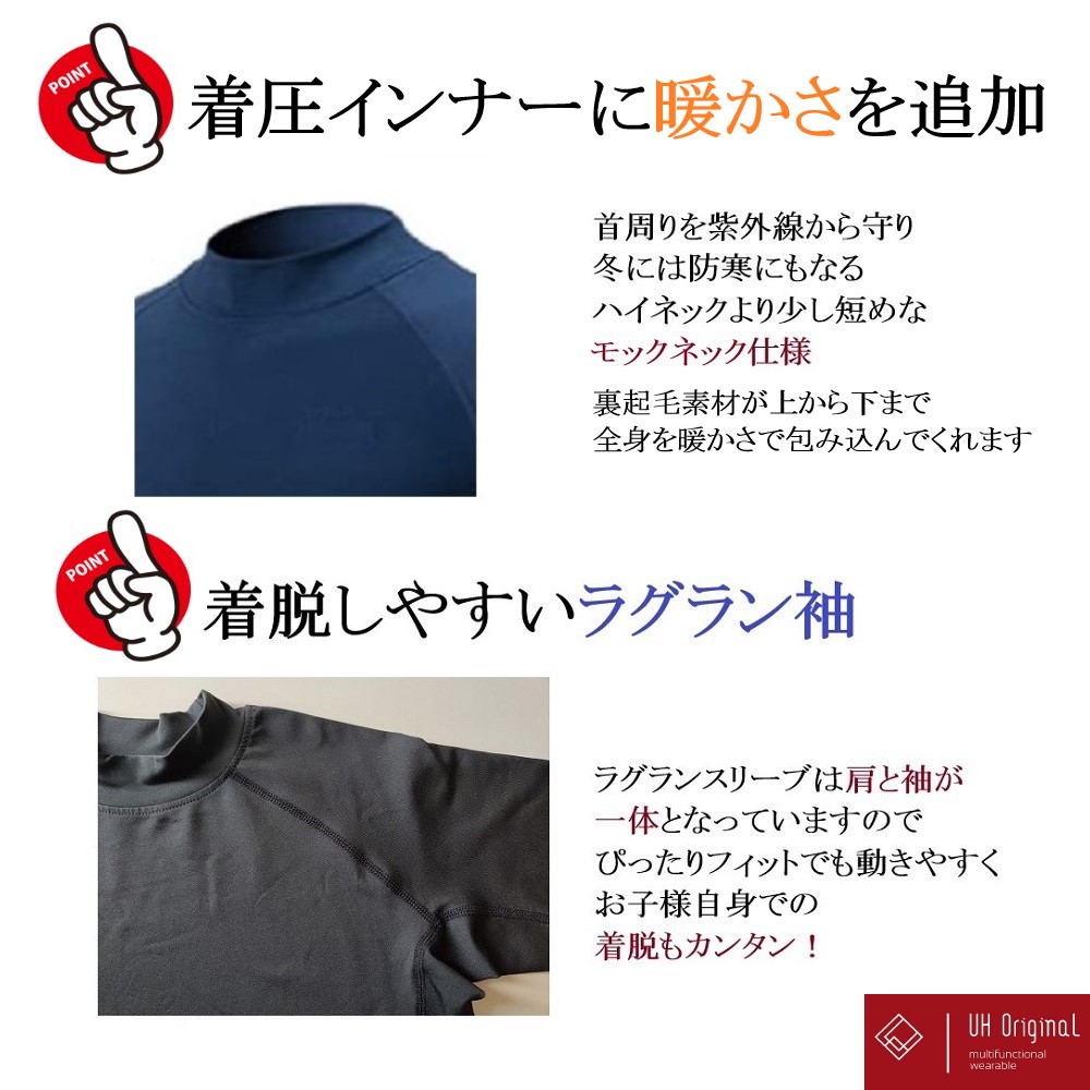 その一方でキッズ・ジュニア世代のスポーツ競技者はそこまでスポーツインナーの着用率が高くない現状を目の当たりにしたことから、練習やトレーニング、さらには試合時に着用することで子供たちのプレーや技術にプラスワンでき、スポーツ中の寒さで身体が凍えてしまい 硬直感が増すことで怪我につながることが無いようにと 暖かさを追求しました。